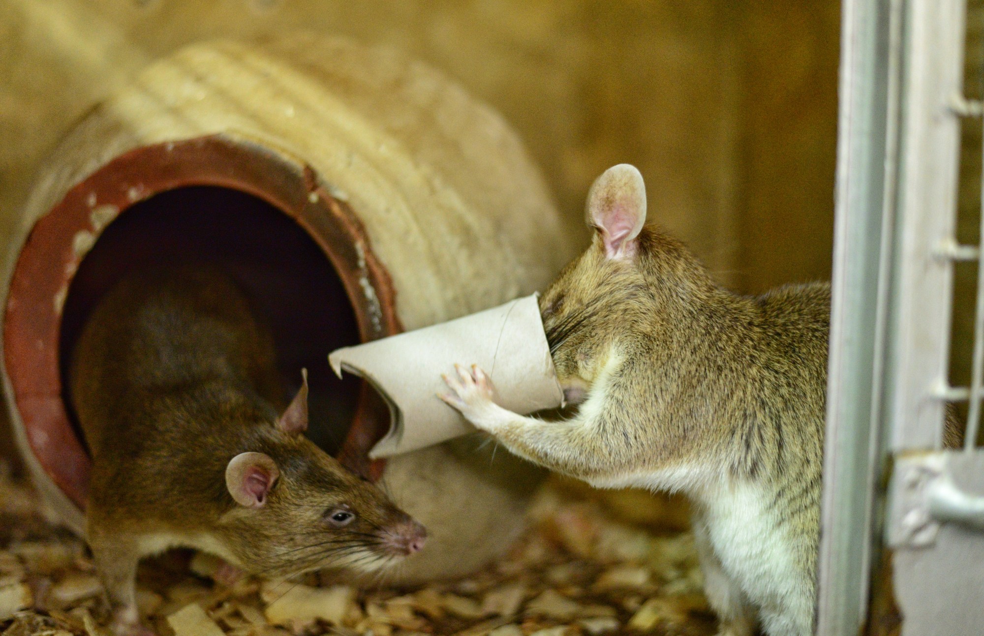 Time flew and we only just finished talking in time for me to grab a quick lunch at the sua staff canteen (chips with tomato sauce, pilipili and salad for 1,000Tsh) and then head back to the main office to watch the rats enjoy the spoils of their Full Cheek Friday treats. I went round with Ellie and Miriam who were handing out extra packets with treats in to some of the rats as part of an experiment with new foods for the rats.