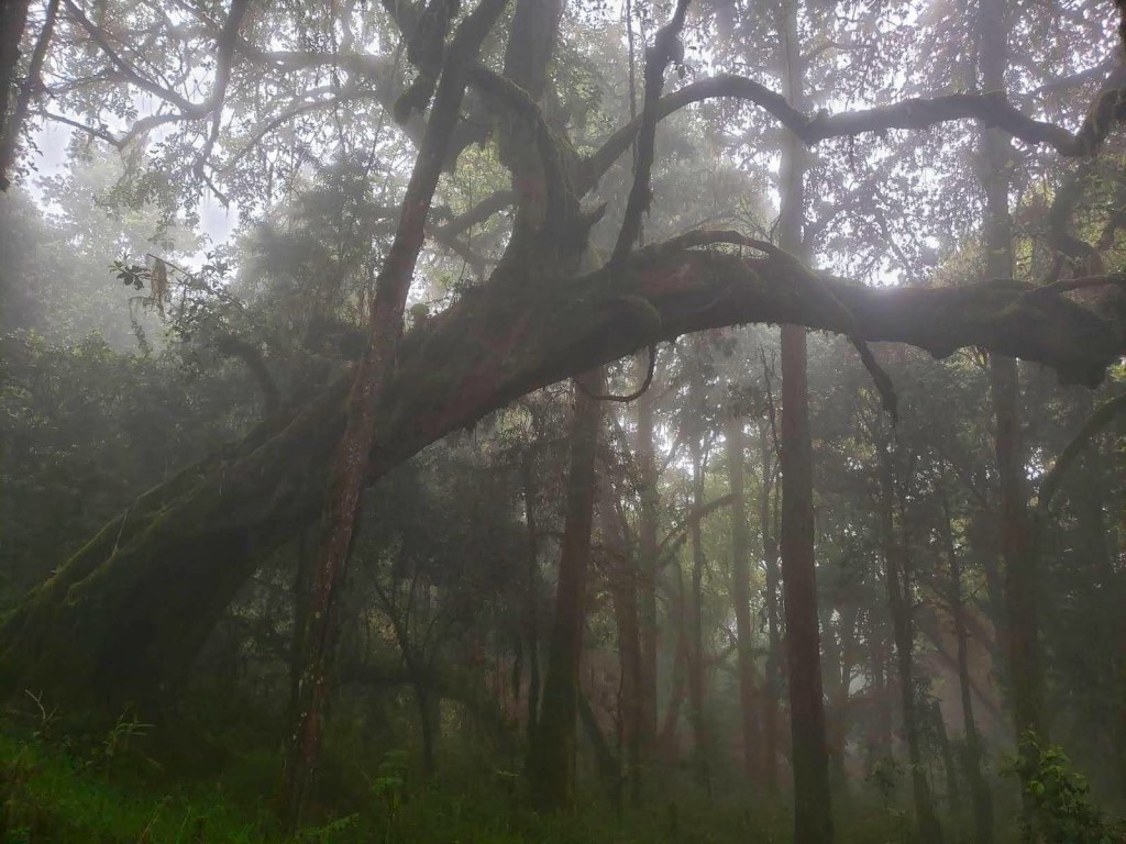We set off pretty early, heading down a mixture of terrains into the rain forest belt around Kilimanjaro and then the path wound down into an incredible area where the moss on the trees and the mist in the air completely deadened any sounds and gave a really eerie atmosphere.