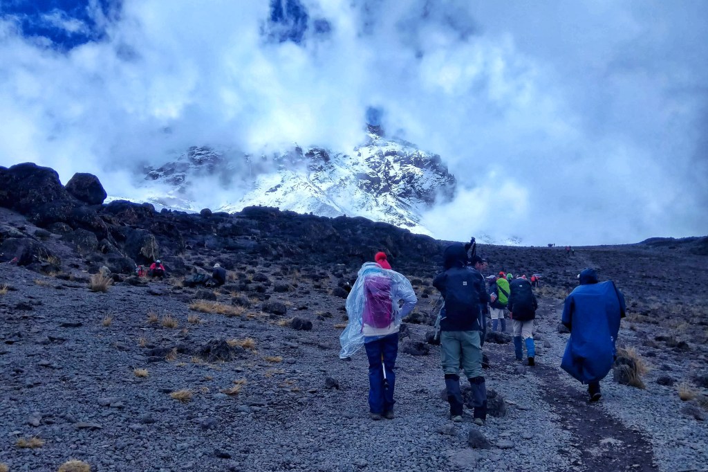 At the top of the wall we got a great view of the Kili summit and we realised that we have now walked around to a different side of the mountain and are getting close to the summiting route.