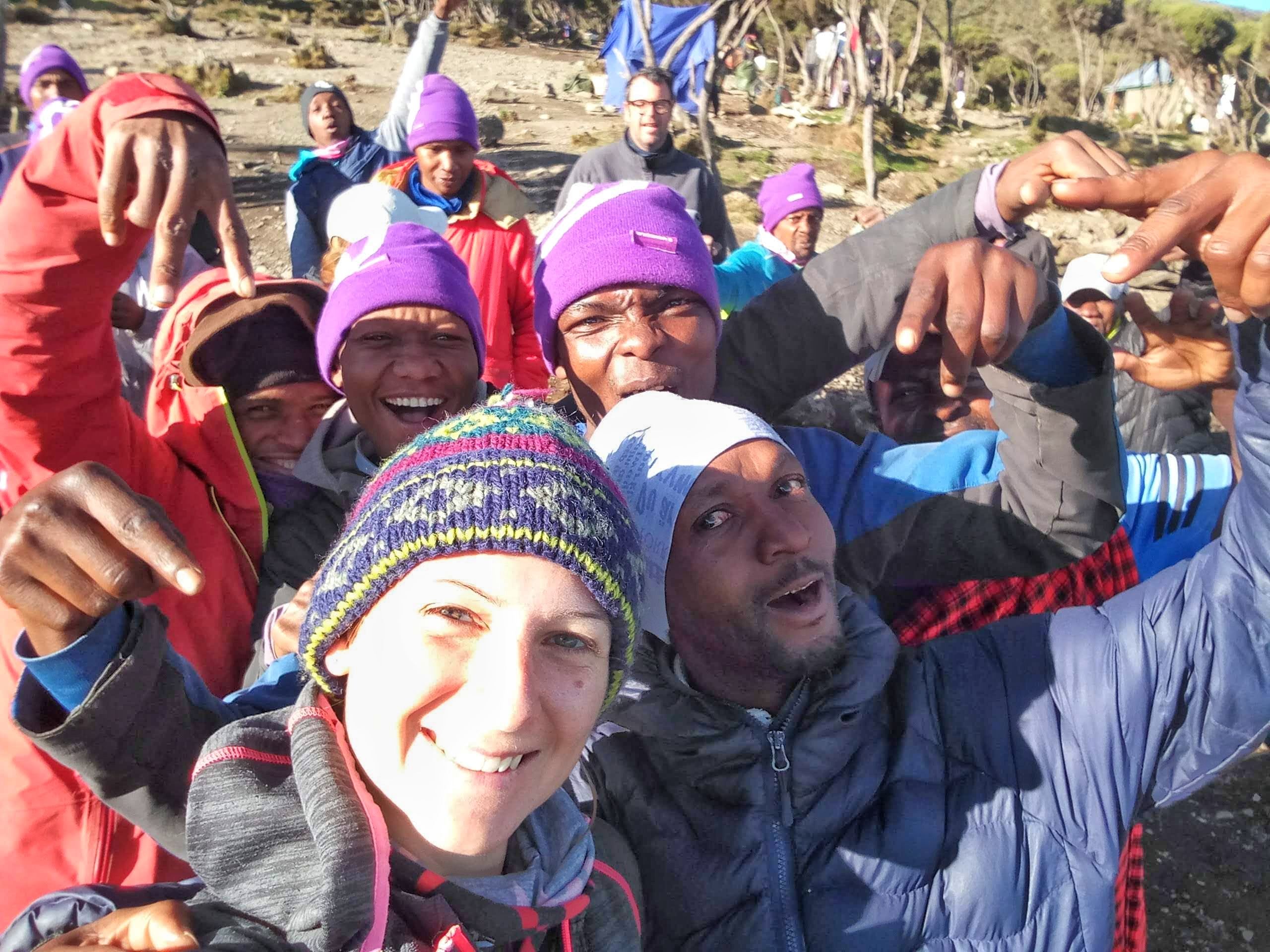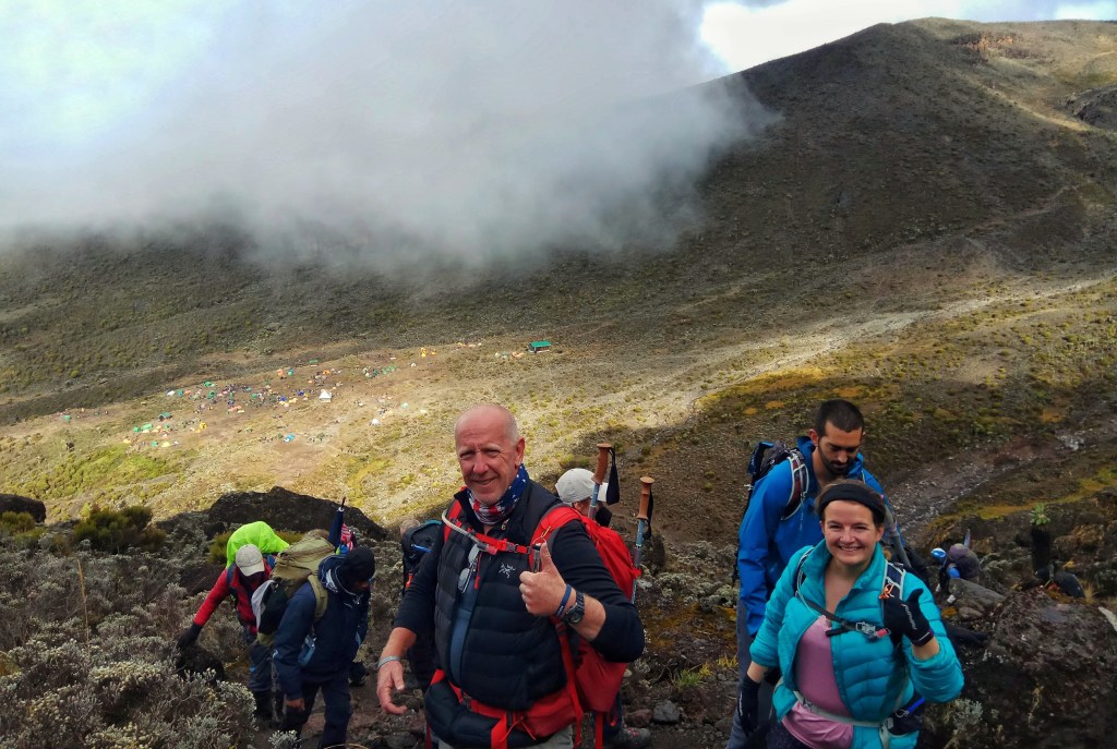 We thought the hike down to Mweka (High) Camp should only have taken a few hours but it took ages and so we decided not to push to reach Millennium (Low) Camp today. We arrived in the late afternoon and were exhausted. This afternoon is when we have to say goodbye to the incredible G-Fighters as they’ll cut and run first thing in the morning to get everything off the mountain.
